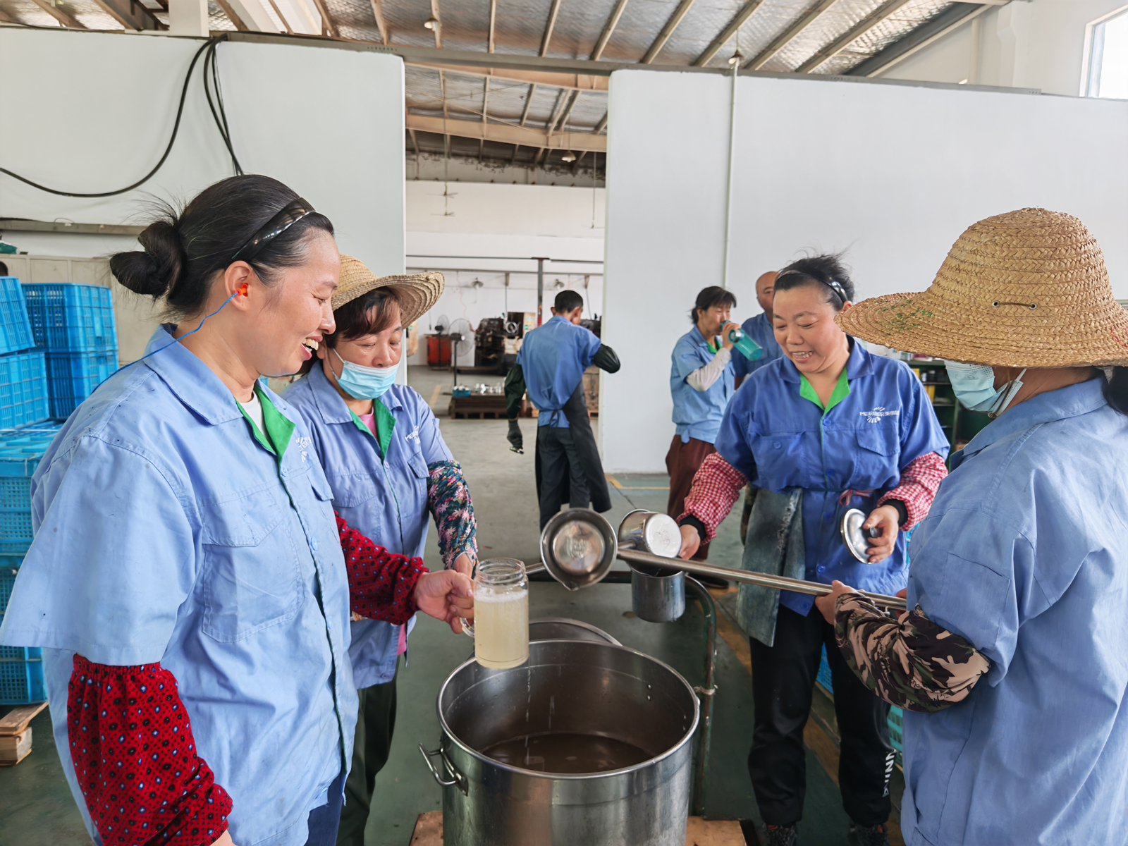 公司為員工精心準備了冰鎮(zhèn)鹽汽水、解暑綠豆湯,幫助大家消暑降溫。一杯清涼的綠豆湯,不僅驅(qū)散了暑氣,更飽含了公司對員工的貼心關愛。