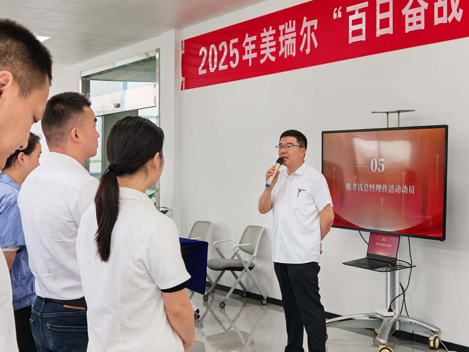 儀式最后,美瑞爾總經(jīng)理陳孝錢先生發(fā)表了振奮人心的動(dòng)員講話。陳總首先肯定了全體同仁過往的努力與付出,并深刻闡述了“百日奮戰(zhàn)”對(duì)于公司發(fā)展的戰(zhàn)略重要性。他強(qiáng)調(diào),這100天,是攻堅(jiān)的100天,是蛻變的100天,更是創(chuàng)造輝煌的100天!