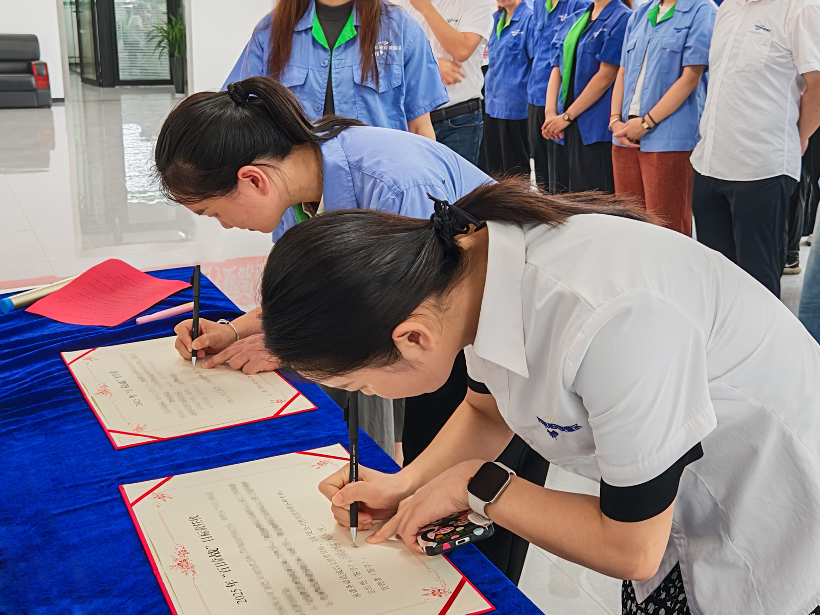 最激動(dòng)人心的環(huán)節(jié)莫過于“軍令狀”簽訂儀式。各部門負(fù)責(zé)人及核心團(tuán)隊(duì)成員依次上臺(tái),在全體同仁的見證下,鄭重簽下屬于自己的“軍令狀”。一筆一劃,寫下的是責(zé)任,是承諾,更是不達(dá)目標(biāo)誓不罷休的決心!鮮紅的軍令狀,如同一面面戰(zhàn)旗,引領(lǐng)著美瑞爾人勇往直前,攻堅(jiān)克難。